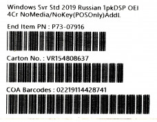 Windows Server Standard 2019 Russian 1pk DSP OEI 4 Core NoMedia / NoKey (POS Only) AddLic