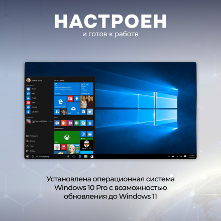Наша компания гарантирует высокое качество продукта и предоставляет 12 месяцев гарантии. Установлена версия Windows 10 Pro с возможностью обновить до 11 про, ключ активации покупается отдельно. Вы также можете приобрести пакет Microsoft Office 2021 Pro Plus с ключом активации и гарантией. Если у вас возникли вопросы по оборудованию или вам нужен апгрейд, обращайтесь к нам - мы всегда рады помочь.